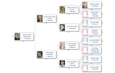 A good place to start exploring the family trees is to select either John or Gwen's name at the very top of this page (the menu on black).